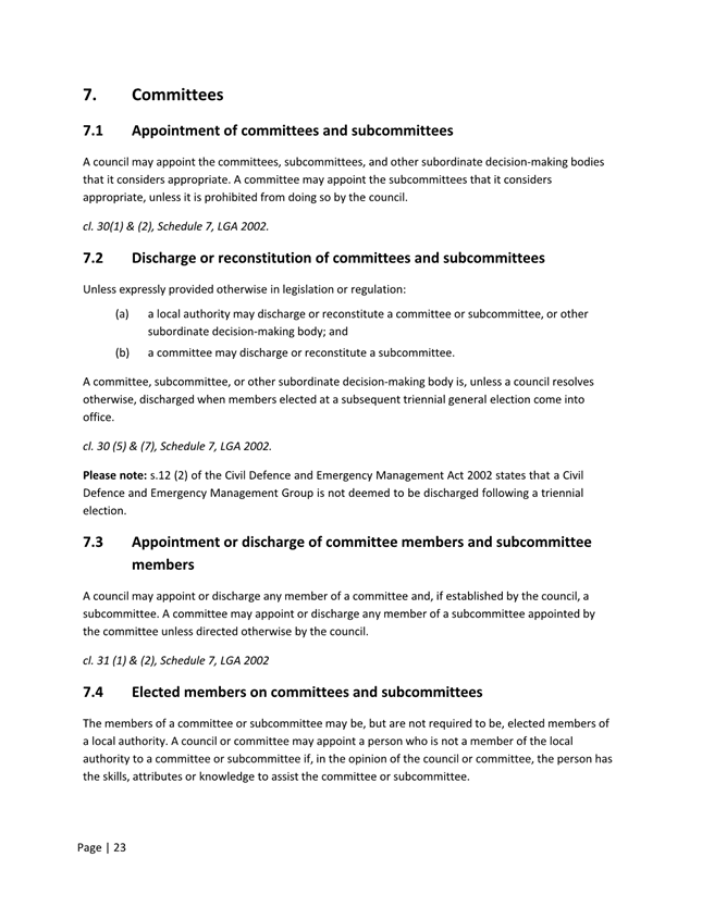 A local authority or Mayor, may establish a Committee and provide that Committee with delegations to make decisions on its behalf. Terms of Reference should be adopted for each Committee to clarify its role, responsibilities and membership.
