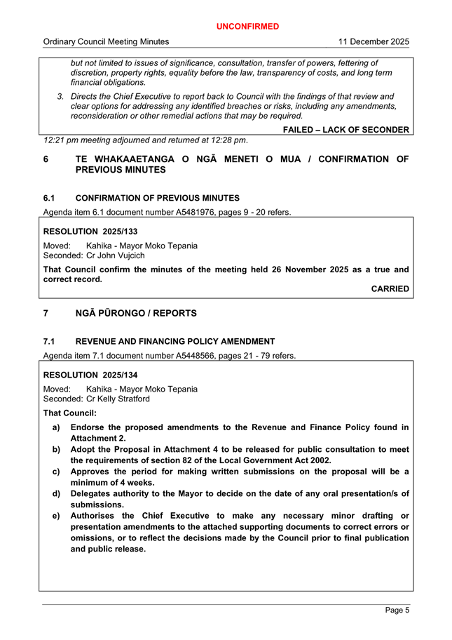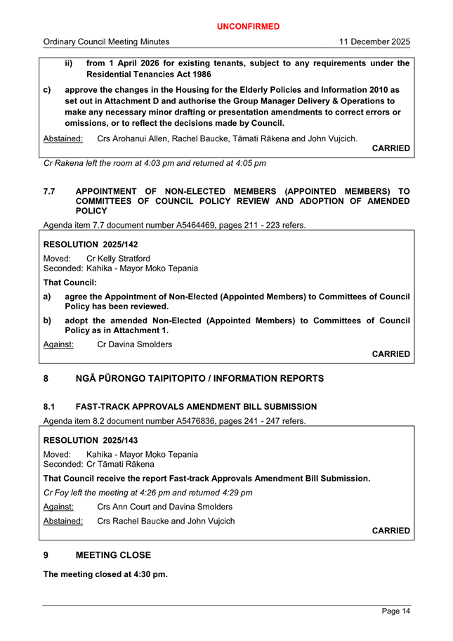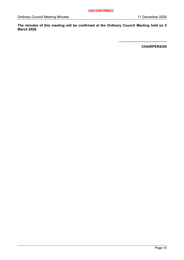 The minutes of the Council meeting held 11 December 2025 are attached: