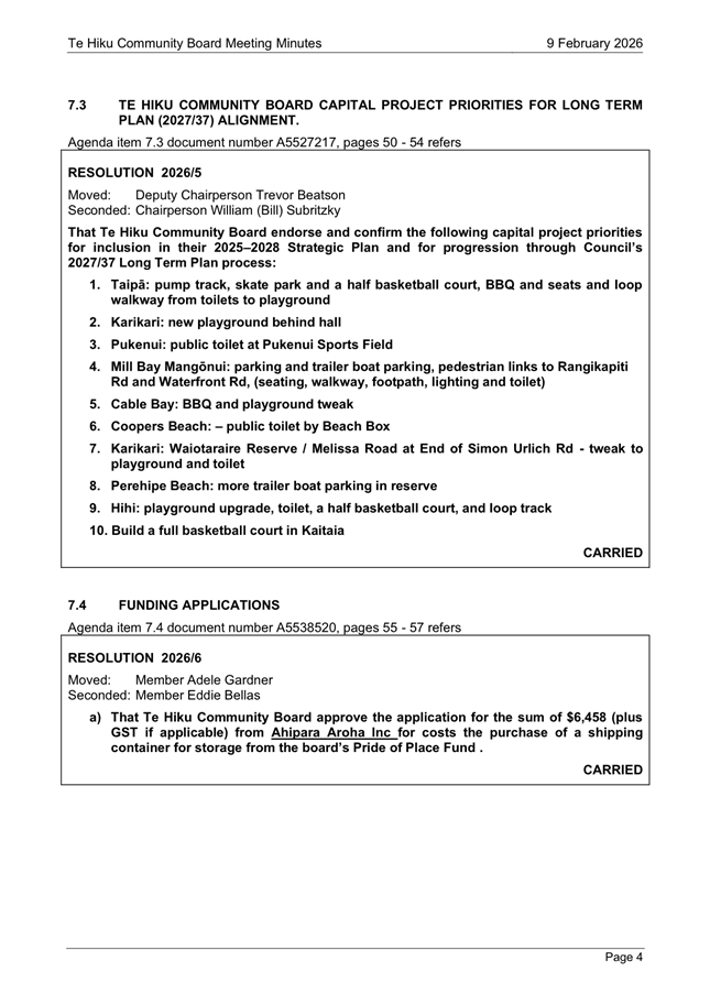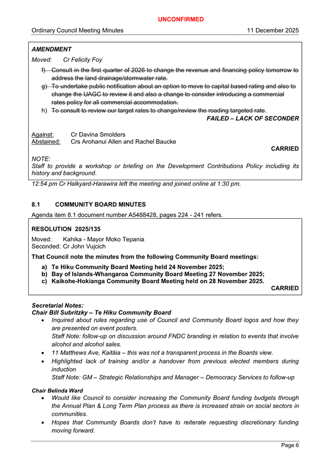 · Minutes from recent Te Hiku, Bay of Islands-Whangaroa and Kaikohe-Hokianga Community Board meetings are attached for Council information.