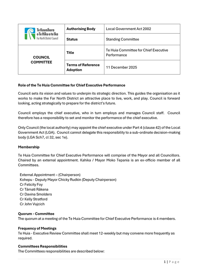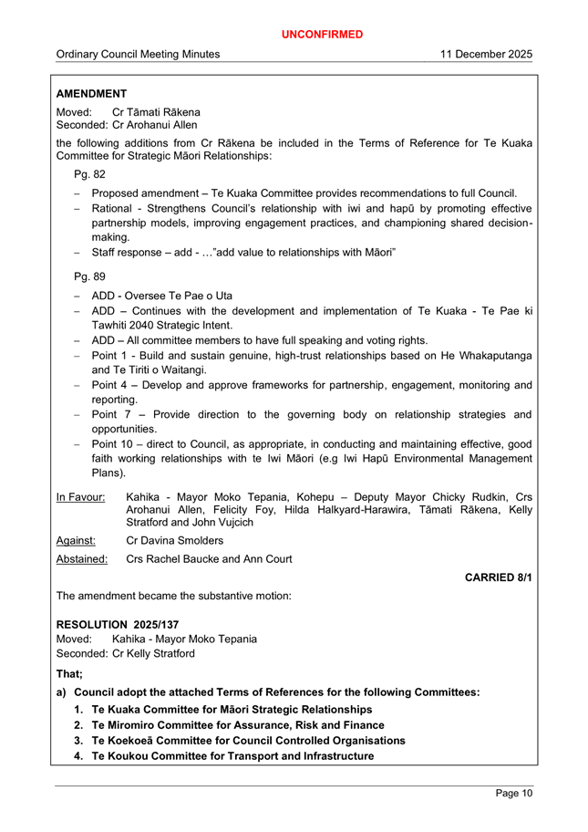 Membership: Kahika - Mayor Moko Tepania - Chairperson Kohepu - Deputy Mayor Chicky Rudkin Cr Arohanui Allen Cr Rachel Baucke Cr Ann Court Cr Felicity Foy Cr Hilda Halkyard-Harawira Cr Tāmati Rākena Cr Davina Smolders Cr Kelly Stratford Cr John Vujcich |