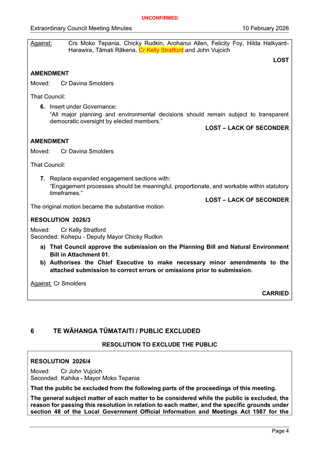 That Council confirm: a) The minutes of the meeting held 11 December 2025 as a true and correct record; b) The minutes of the extraordinary meeting held 10 February 2026 as a true and correct record. |