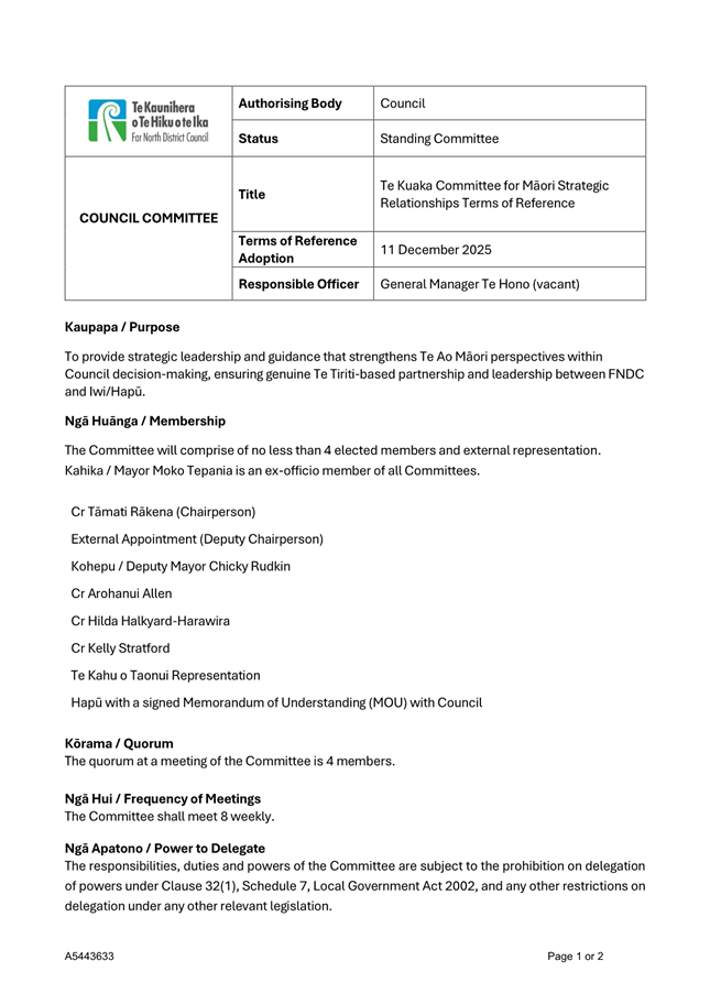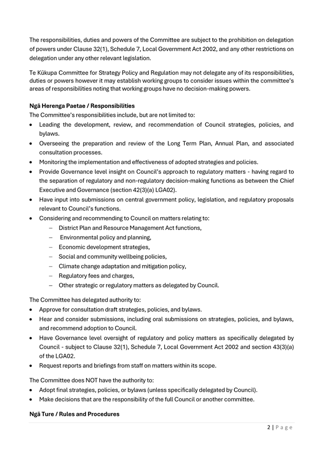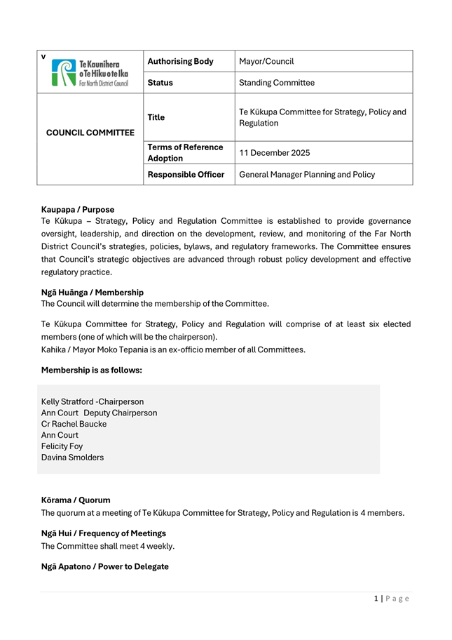· Te Kūkupa Committee for Strategy, Policy and Regulation