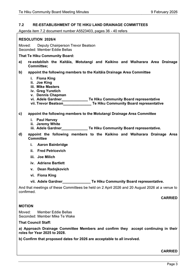 That Council note the minutes from the following Community Board meetings: a) Te Hiku Community Board Meeting held 09 February 2026; b) Bay of Islands-Whangaroa Community Board Meeting 12 February 2026; c) Kaikohe-Hokianga Community Board Meeting held on 11 February 2026.