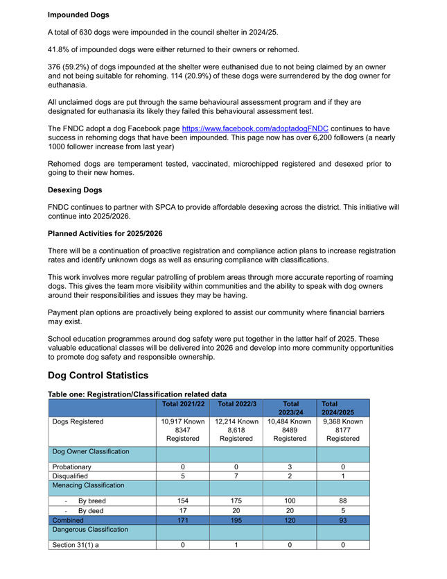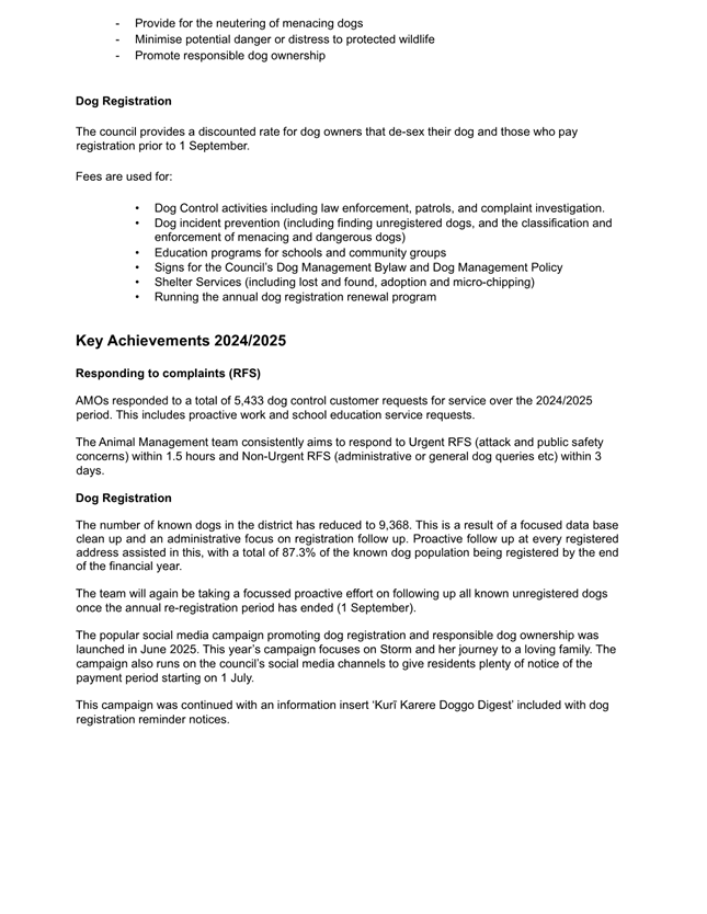 That the Council receives the Annual Report on Dog Control Policy and Practices 2024/2025.