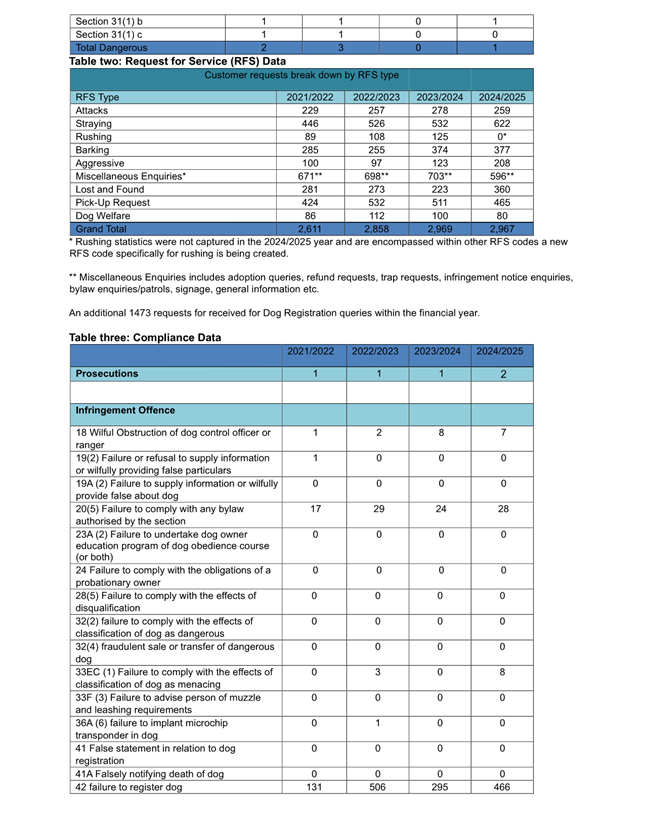 There has been a total of 2,967 dog control customer requests for service received over the 2024/2025 period. This is 2 less individual requests for service than the previous year and does not include general registration queries of which there were an additional 1473.