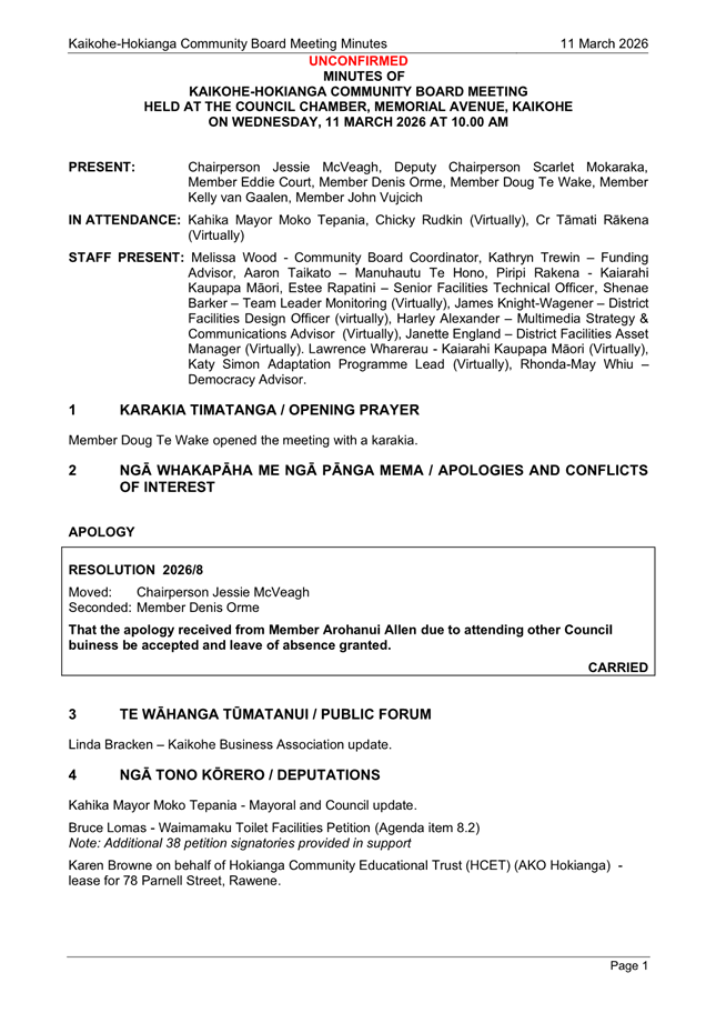 Kaikohe-Hokianga Community Board Meeting Agenda |