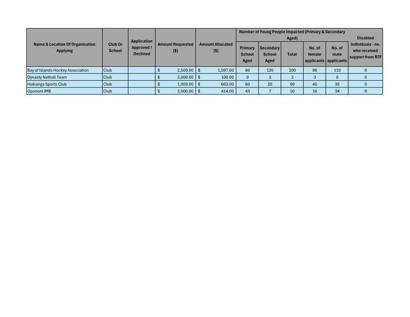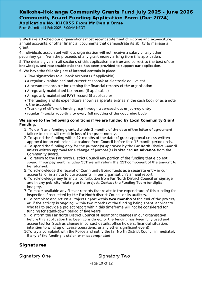Each application has been assessed and meets the criteria of the Community Grant Policy, Community Outcomes as listed in the LTP and the conditions listed on the application form.