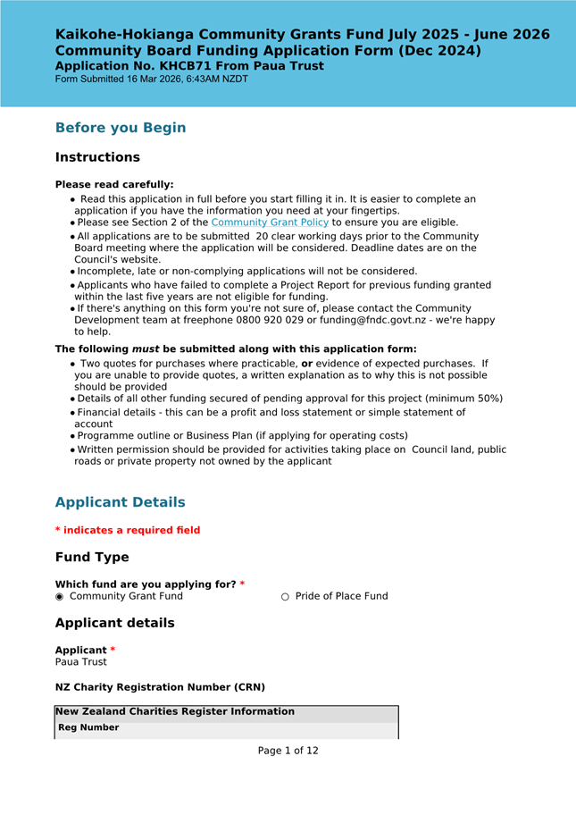 Community Grant Policy and Te Pae o Uta. |