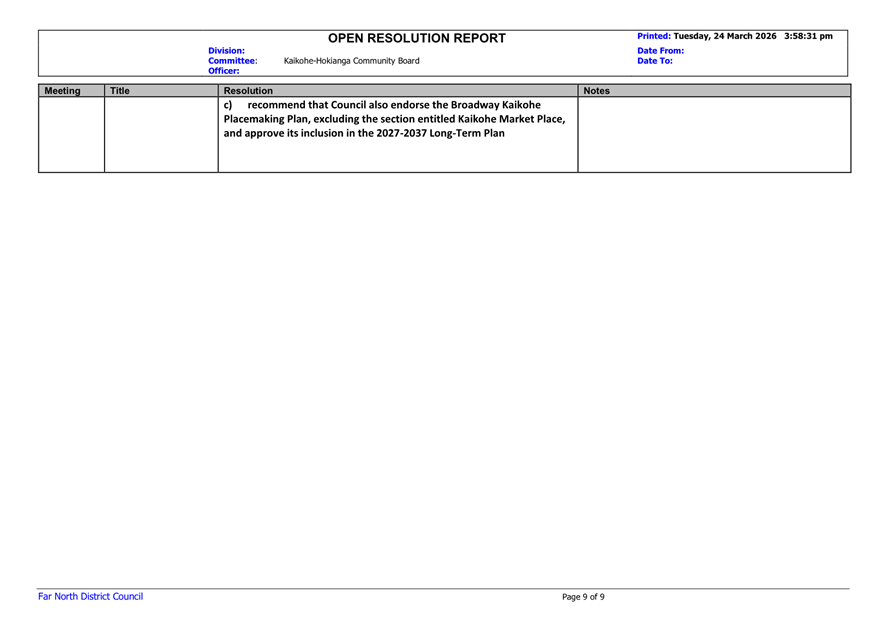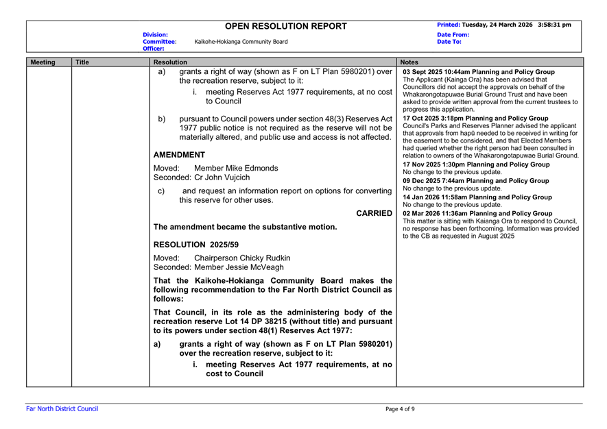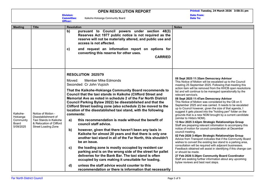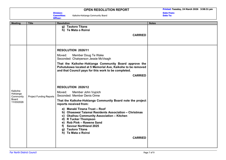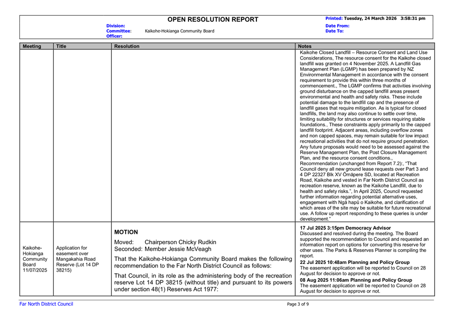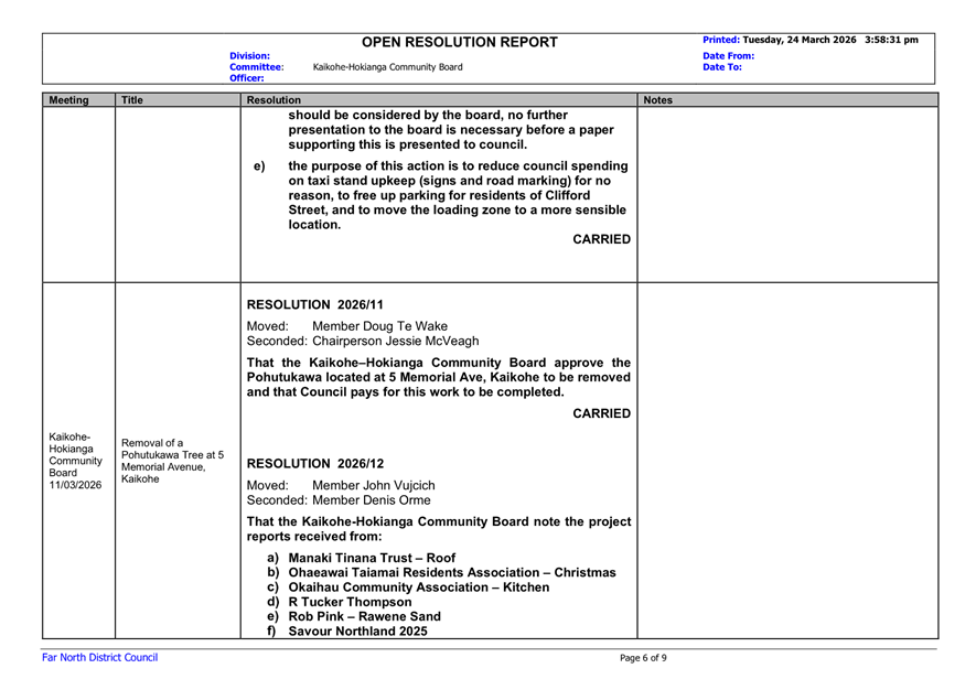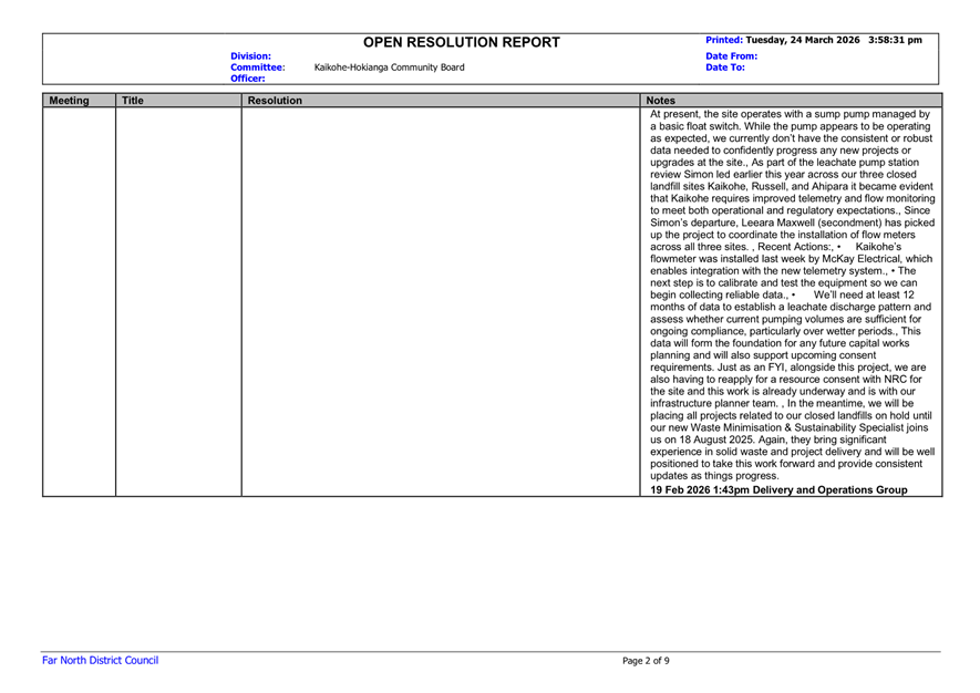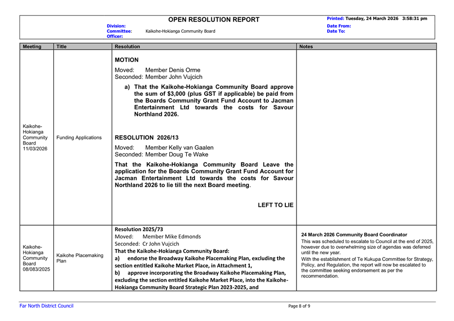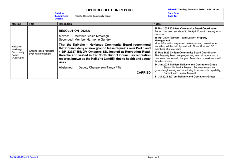 That the Kaikohe-Hokianga Community Board receive the report Open Resolutions and Actions Update - April 2026.